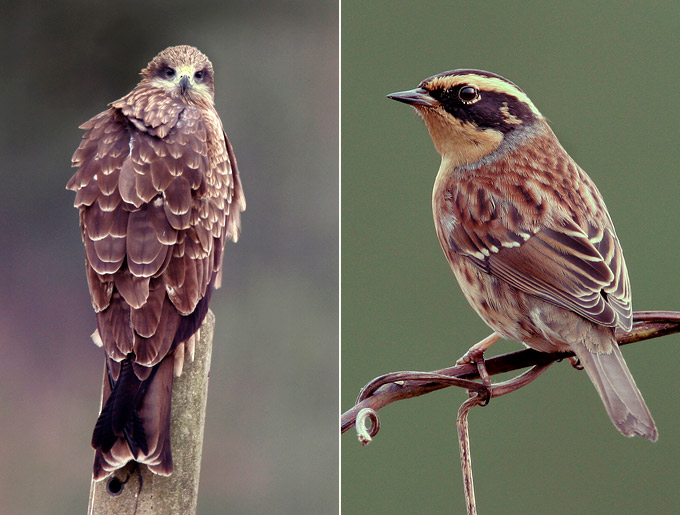 Several species of passerines were present. About 60 Far Eastern Larks, Yellow- throated, Rustic and Meadow Buntings, Long- tailed Rosefinches, Siberian Accentors and Bramblings. A Bull-headed Shrike was seen attempting to catch Vinous- throated Parrotbills.