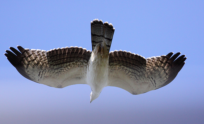 The spectacular movement of migrants continued unabated. A vantage point on the northern peak provides a heavenly view of the island and silver sea, with a clear but distant look at the north Korean coast. From here raptors can be picked out floating in off the sea, before forming loose kettles and cruising along the ridge, lastly spiralling upward with ground-assisted thermals before arcing down to commence a long straight glide toward China's Shandong peninsula.
