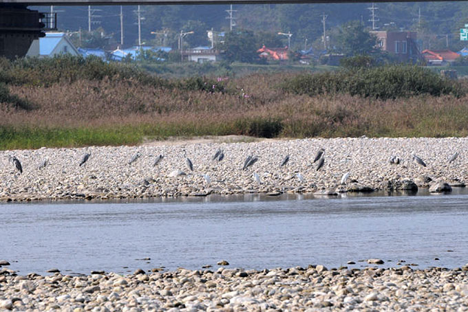 Around the end of August I saw Red-necked Stints in Yanggu and Far Eastern Curlews, Whimbrels, Wood Sandpipers, a Terek Sandpiper, Grey Plovers, Mongolian Plovers, Black-headed Gulls, an Osprey and Grey-spotted Flycatchers at Namdaecheon near Yangyang. Sanderlings and a Red-necked Stint were seen feeding on wave-washed rocks at Cheongganjeong on the last Saturday of the month.