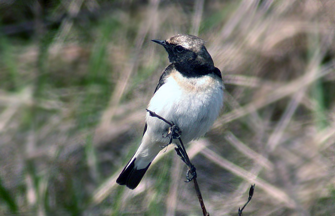 61 species and only 431 individuals of all species logged (compared to 601 individuals of 77 species on April 20th 2003). Best for the day were the Pied Wheatear still (much showier than on 19th, though clearly spooked by the arrival of a big camera lens from the mainland!), a Citrine Wagtail (possibly the same, and remaining largely hidden for a couple of days?), a season high count of Pallas’s Leaf Warbler (15), a Latham’s Snipe seen briefly in the morning, and the Red-necked Grebe still.
