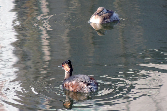 In the morning when the tide was filling the stream 22 Gadwall, 6 Eastern Spot-billed Duck and one Little Egret were already in a pool. Later 2 Great Crested Grebe also came into the strem, while 14 more were outside the strem near the Yeongsan barrage like the day before. Also seen were 4 Mallard, one Little Grebe and one very active Black-necked Grebe. Quite amazing birding for a stream along an apartment zone and elementary school.