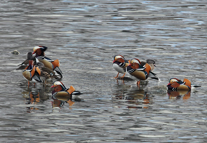 A morning visit to a small stretch of Bukhangang, with mist giving way to mild early winter sunshine. On the river, 12 Common Mergansers, 3 Common Goldeneyes, a Grey Heron, 5 Little Grebes and about 20 fly-over Eastern Spot-billed Ducks. Also above, an Eastern Buzzard. On and around the rocks: 2 Brown Dippers and 2 Japanese Wagtails. In the brushy verge, a few Yellow-throated Buntings and a pair of Great Tits.
