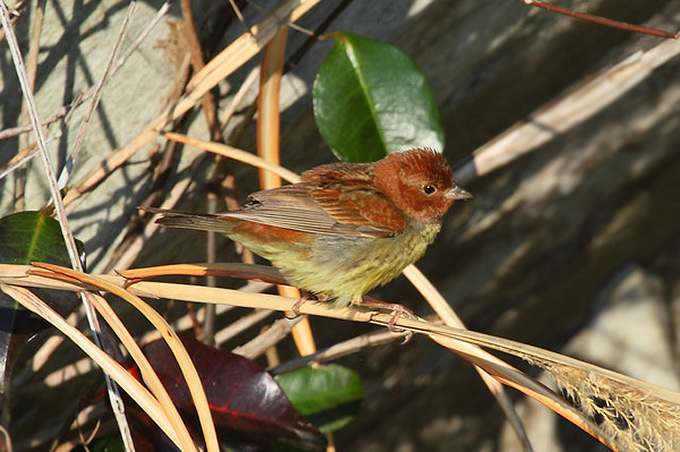 Encouraged by the rise in bird activity, I returned to these new spots on May 1st and one of the first birds I encountered was a Common Rosefinch. In a tree teeming nervously with flycatchers, white-eyes, and warblers, I saw a drab bird notable for its lack of movement. It was clearly a finch, with a strongly notched tail, (very) heavy bill, and streaked underparts. The overall drabness, heavy bill, light 'string-of-pearl' markings on the wings, and even the faint eye-ring were noted in the field, before it headed north, one tree at a time. I also heard my first Oriental Reed Warbler nearby.