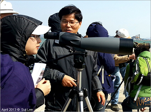 We have already started the celebration. In March, Birds Korea worked with students at schools in three cities (Gimhae, Incheon and Busan) as part of a Spoon-billed Sandpiper animation project initiated by the Hong Kong Birdwatching Society. The same month a team of five eco-interpreters (all Birds Korea members) also started a year-long program of informing, educating and inspiring visitors to the internationally-important and still highly-threatened Nakdong Estuary.