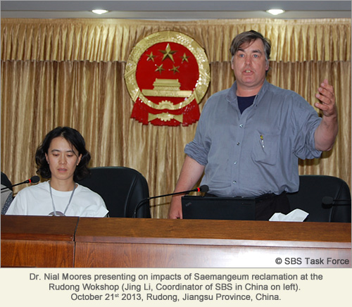 The survey was followed by a two-day workshop(5) hosted by the Rudong government. Workshop participants were encouraged by the commitment of local and provincial government to stop illegal hunting along the coast and to designate a protected area for the Spoon-billed Sandpiper.