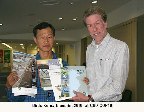 The Birds Korea Blueprint aims to support ongoing conservation initiatives as part of the Republic of Korea’s (ROK) efforts to reduce the rate of biodiversity loss (by 2010), in line with commitments to the Millennium Development Goals. It is a collection of articles and recommendations based on the understanding that biodiversity underpins the functioning of the ecosystems on which people also depend for life and livelihood. The Blueprint’s focus is the conservation of avian biodiversity of the ROK part of the Yellow Sea or “Yellow Sea Blueprint Region” (YSBR), and contains essential information on key sites, species and conservation initiatives divided into three main habitats (intertidal wetland, open sea areas, and islands).